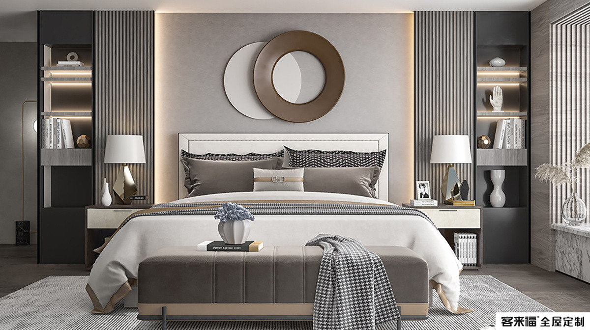 The bedroom space is simple and majestic, the colors are simple and clean, the lines are simple and smooth, and the overall elegance and details are emphasized. It reflects the light luxury and exquisiteness of modern home decoration, and makes people feel a kind of back to basics and elegant life.