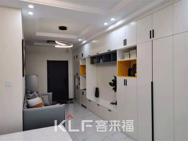 为贴合现代年轻人的喜好,装修风格主要为现代轻奢风。以不易黑白灰为基色,并以暖色调搭配,让在外拼搏劳累一天的年轻人,回到家中能够感受到家的温暖。