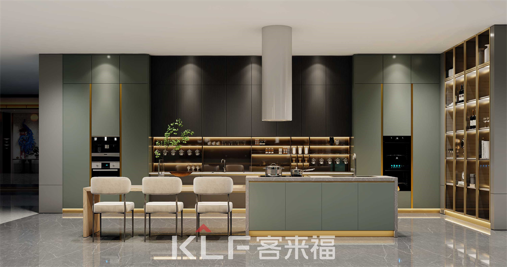 美食是生活的调味剂,厨房的装修直接影响着我们生活的幸福感。墨奈系列橱柜,两侧装修高柜,储物容量大。岛台为智能操作台,闭合状态就是一个餐台或者吧台,完美节省空间;台面伸展开后,就加大了操作空间。